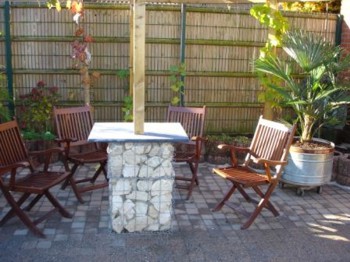 zasiądziemy przy stole wykonanym z gabionów.