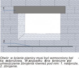 zazwyczaj zaprojektowane są okna piwniczne. Ściana wokół tych
